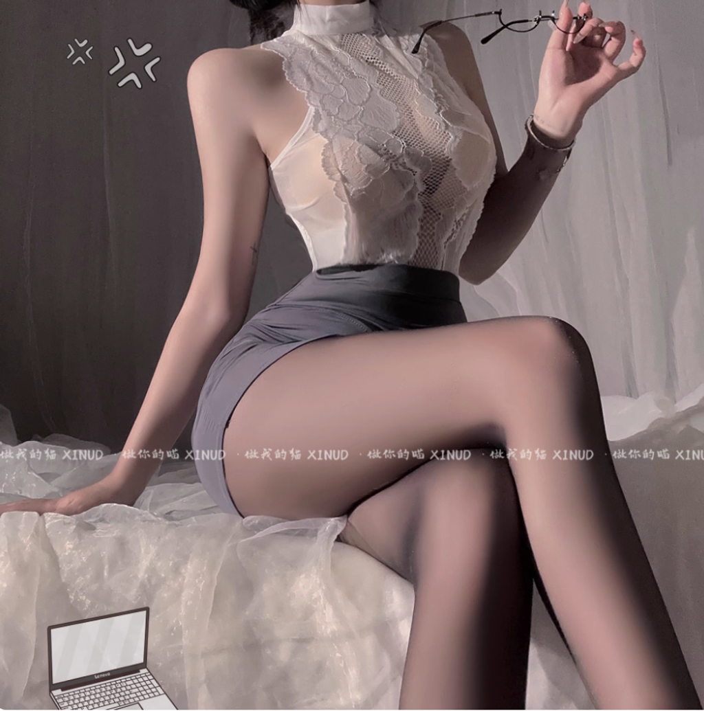 做妳的貓:風情俏小秘*蕾絲性感睡裙氣質禦姐網紅連體秘書包臀裙