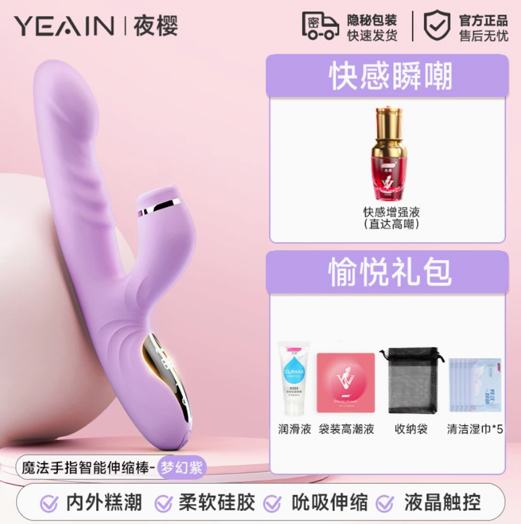 【浴望點燃 輕鬆瞬潮】(紫)伸縮舌吸液晶棒+快感增強液+愉悅豪禮