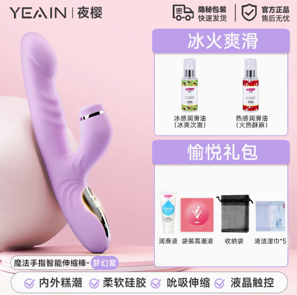 【冰火刺激 水潤爽滑】(紫)伸縮舌吸液晶棒+冰火雙感油+愉悅豪禮