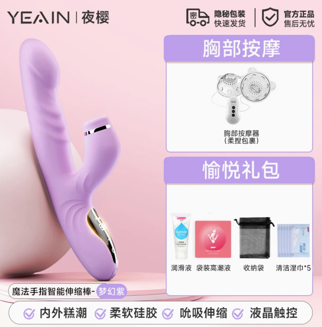 【乳房按摩 多點共享】(紫)伸縮舌吸液晶棒+乳房按摩器+愉悅豪禮