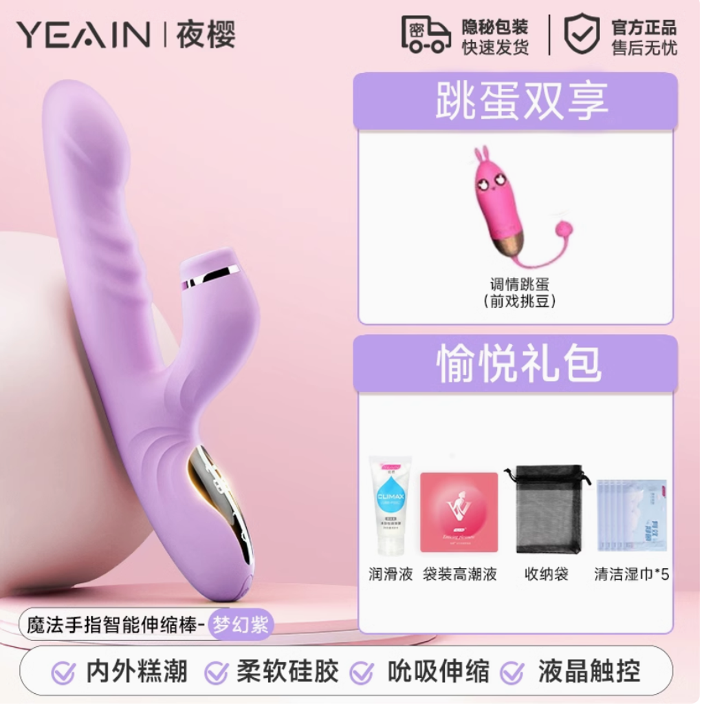 【酥麻挑逗 小巧便攜】(紫)伸縮舌吸液晶棒+小兔跳蛋+愉悅豪禮