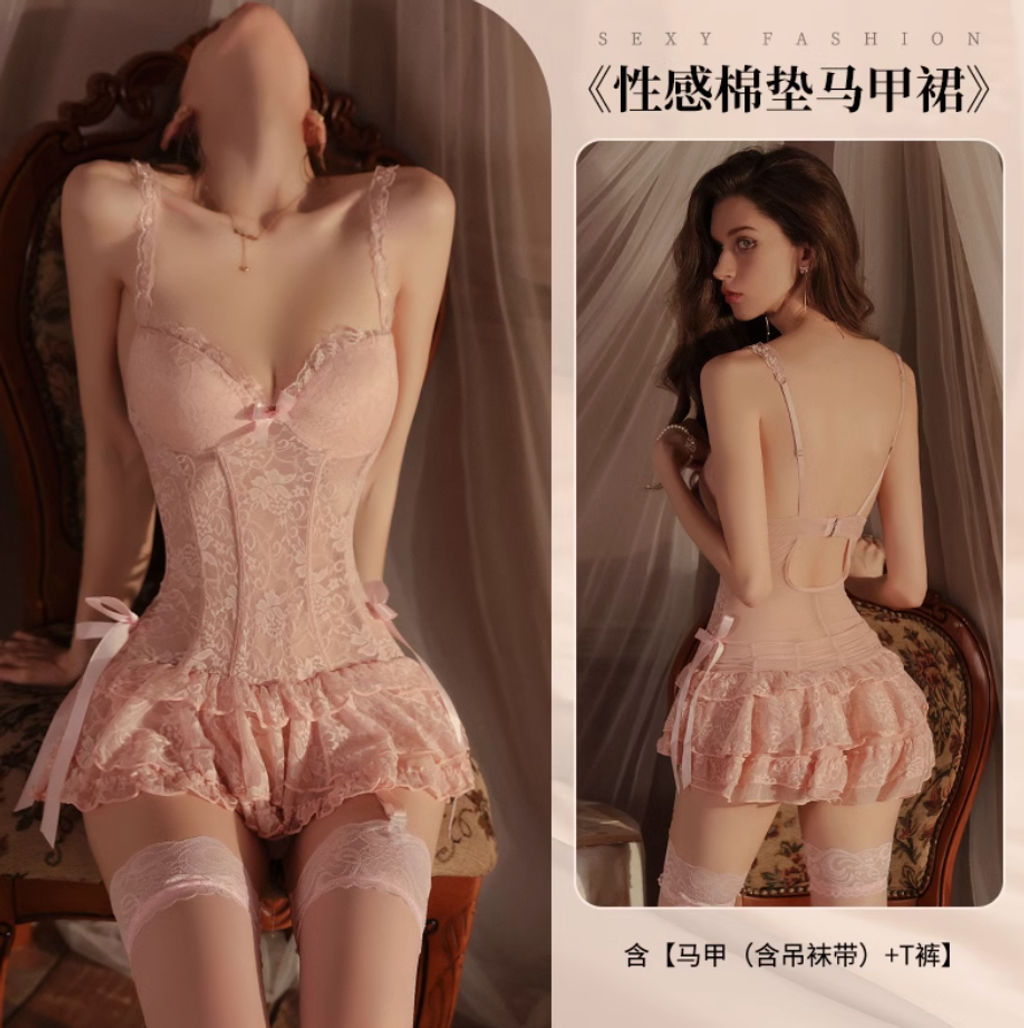 純欲粉【馬甲(含吊襪帶)+T褲】