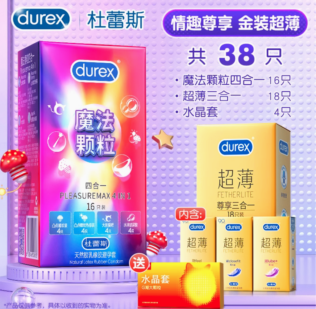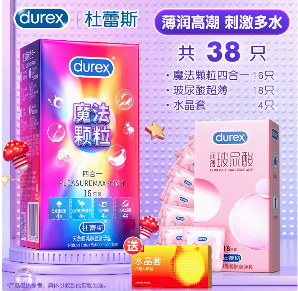 薄潤高潮.刺激多水【共38只】魔法16+爆水超薄玻尿酸18+水晶套4