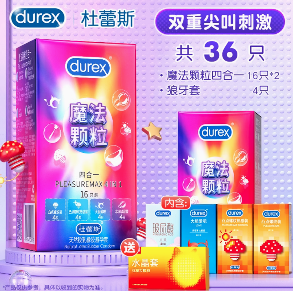 顆粒延時.高潮持久【共36只】魔法四合一16+延時三合一16+水晶套4