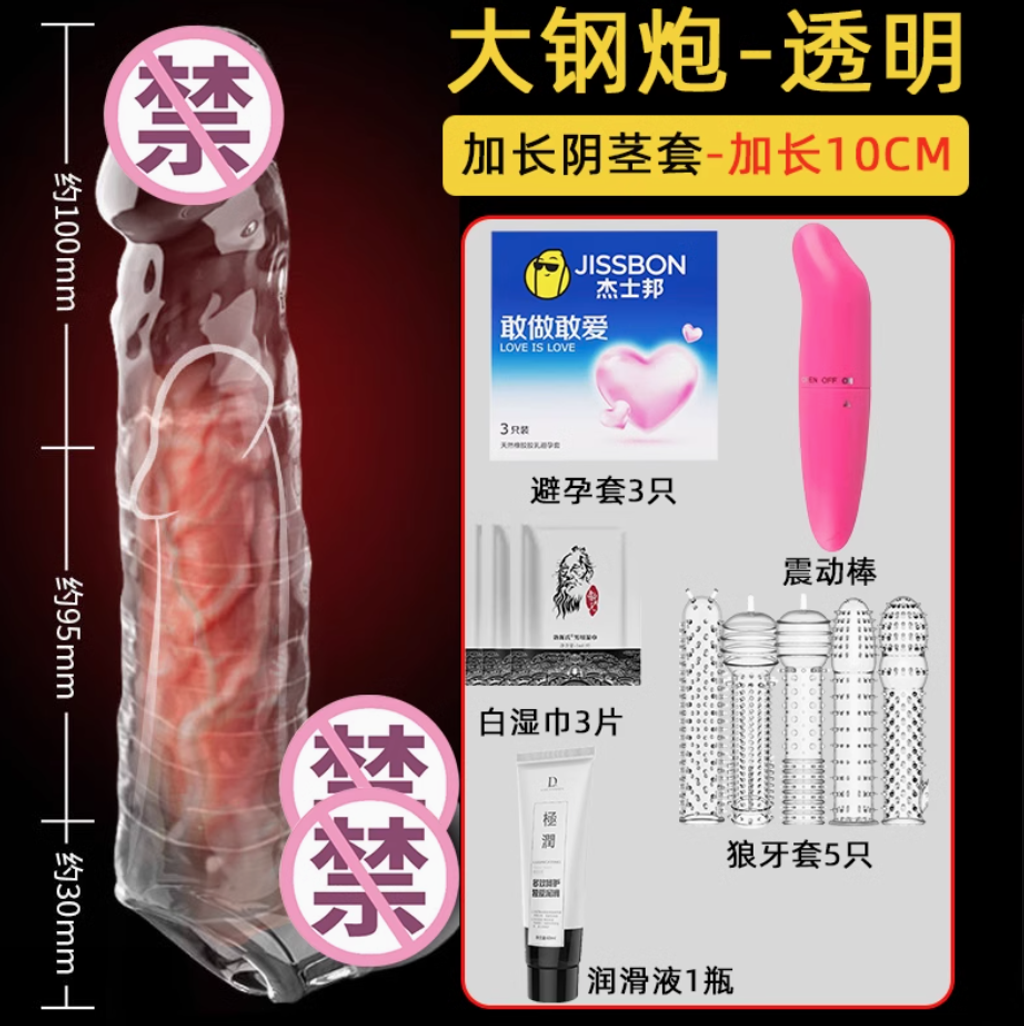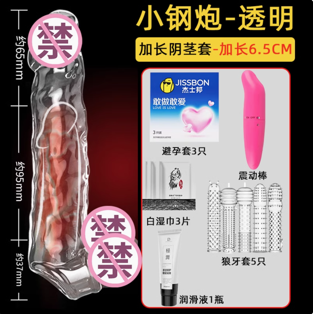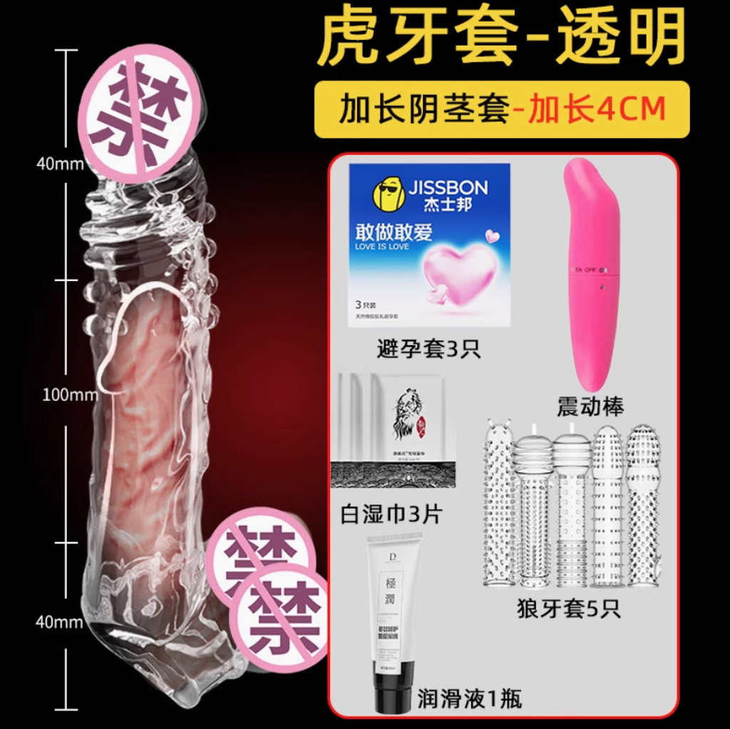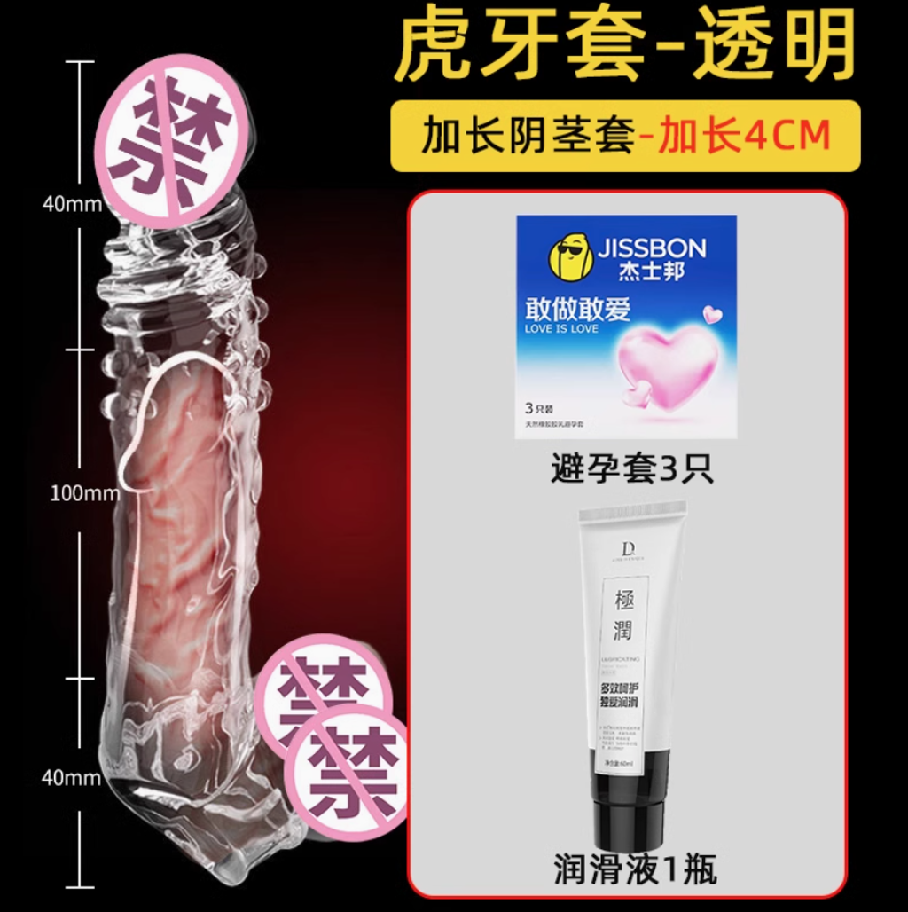 【虎牙加長4釐米1只】避孕套3只+潤滑液+情趣大禮包