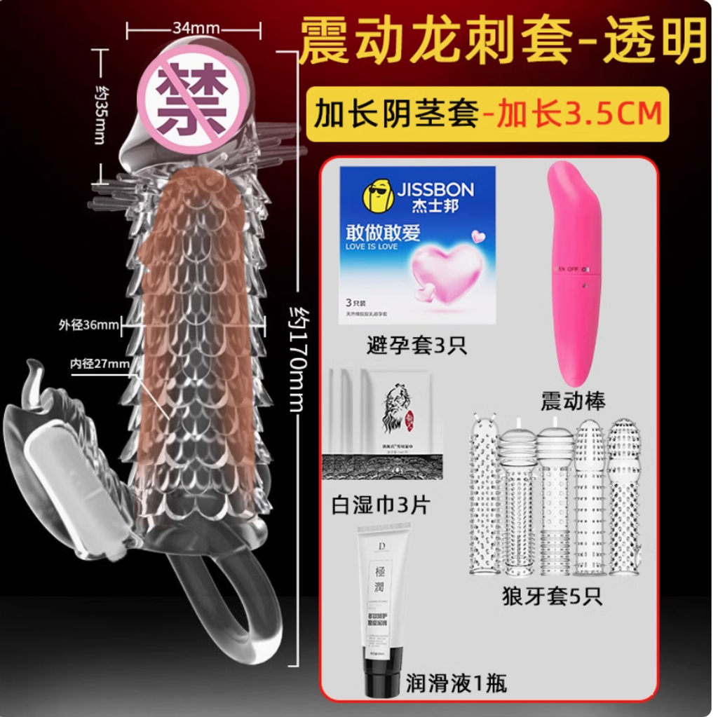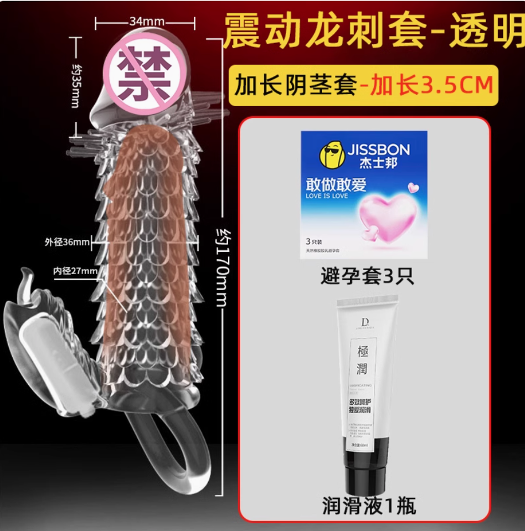 【震動款龍刺套加長3.5釐米1只】避孕套3只+潤滑液+情趣大禮包