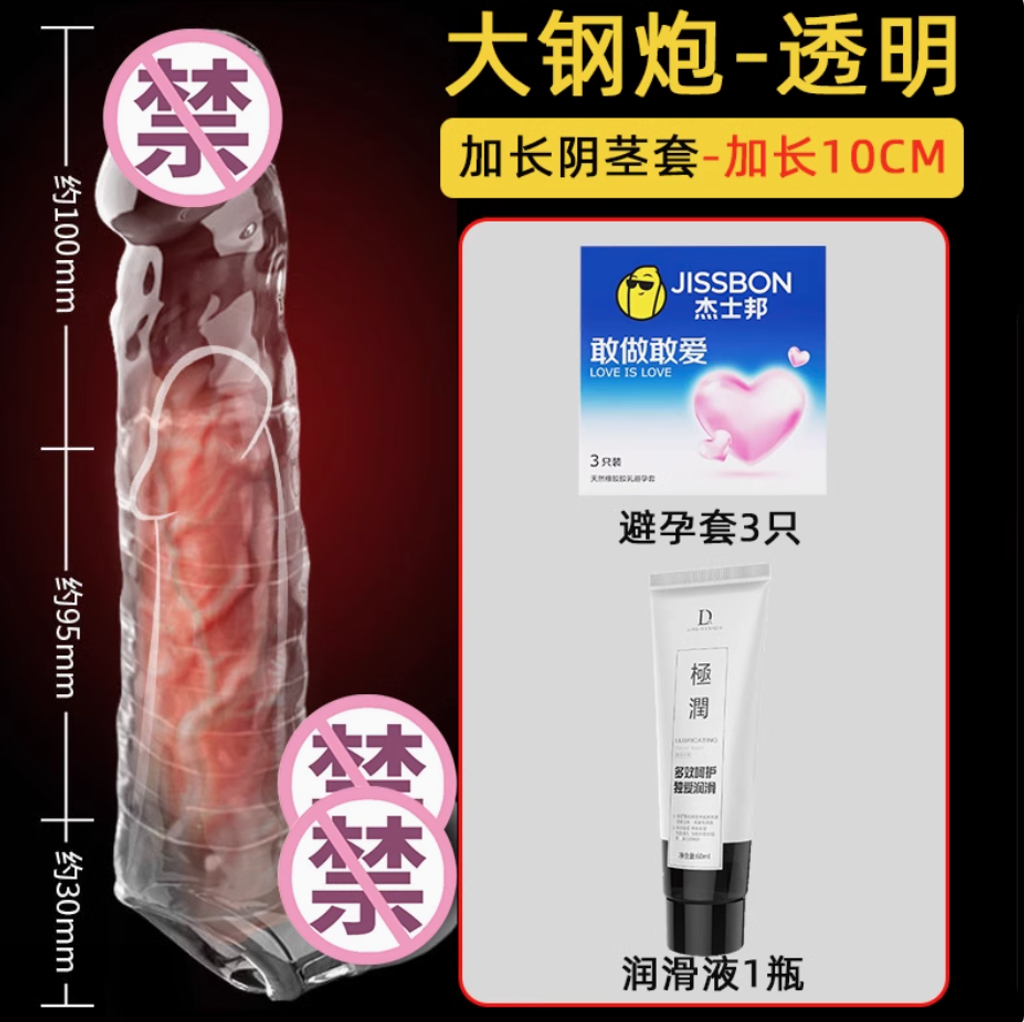 【大鋼炮加長10釐米1只】避孕套3只+潤滑液