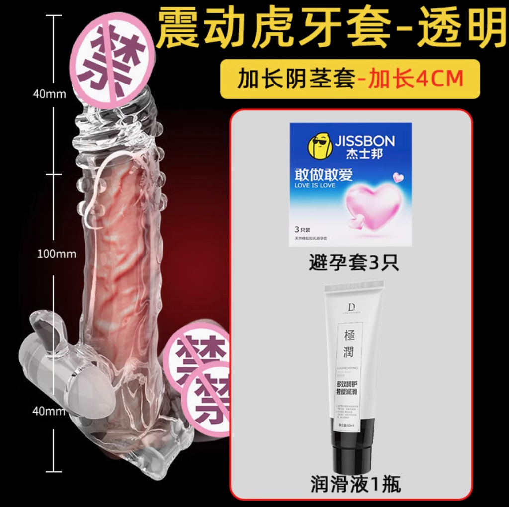 【震動款虎牙加長4釐米1只】避孕套3只+潤滑液