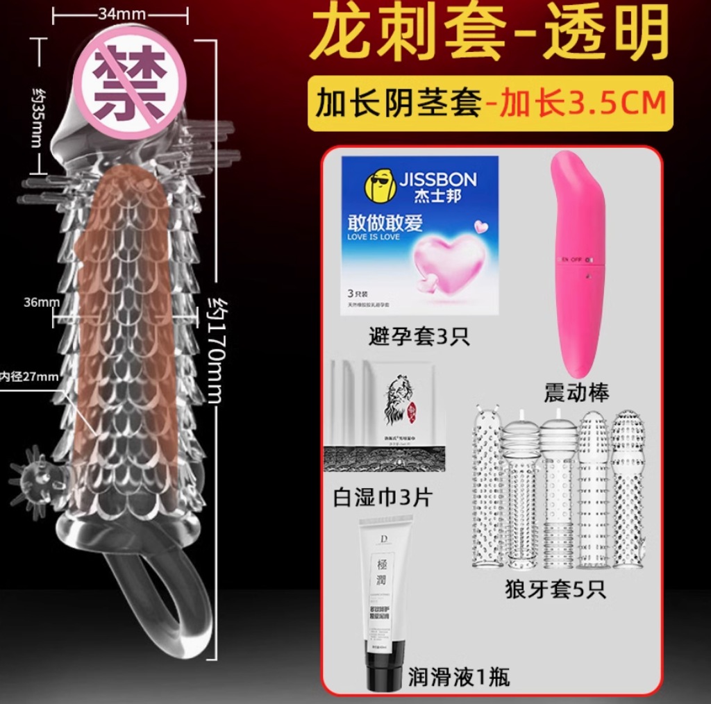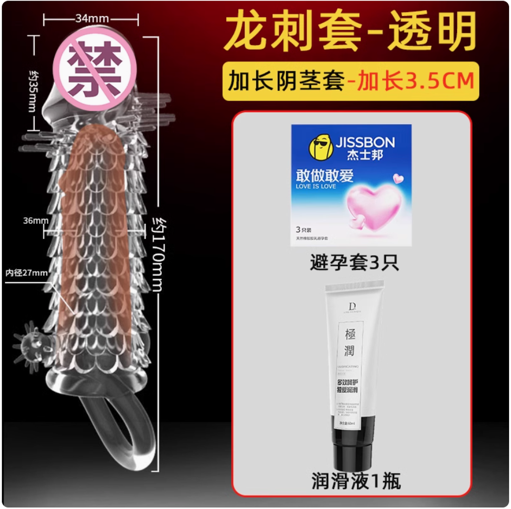 【龍刺套加長3.5釐米1只】避孕套3只+潤滑液+情趣大禮包