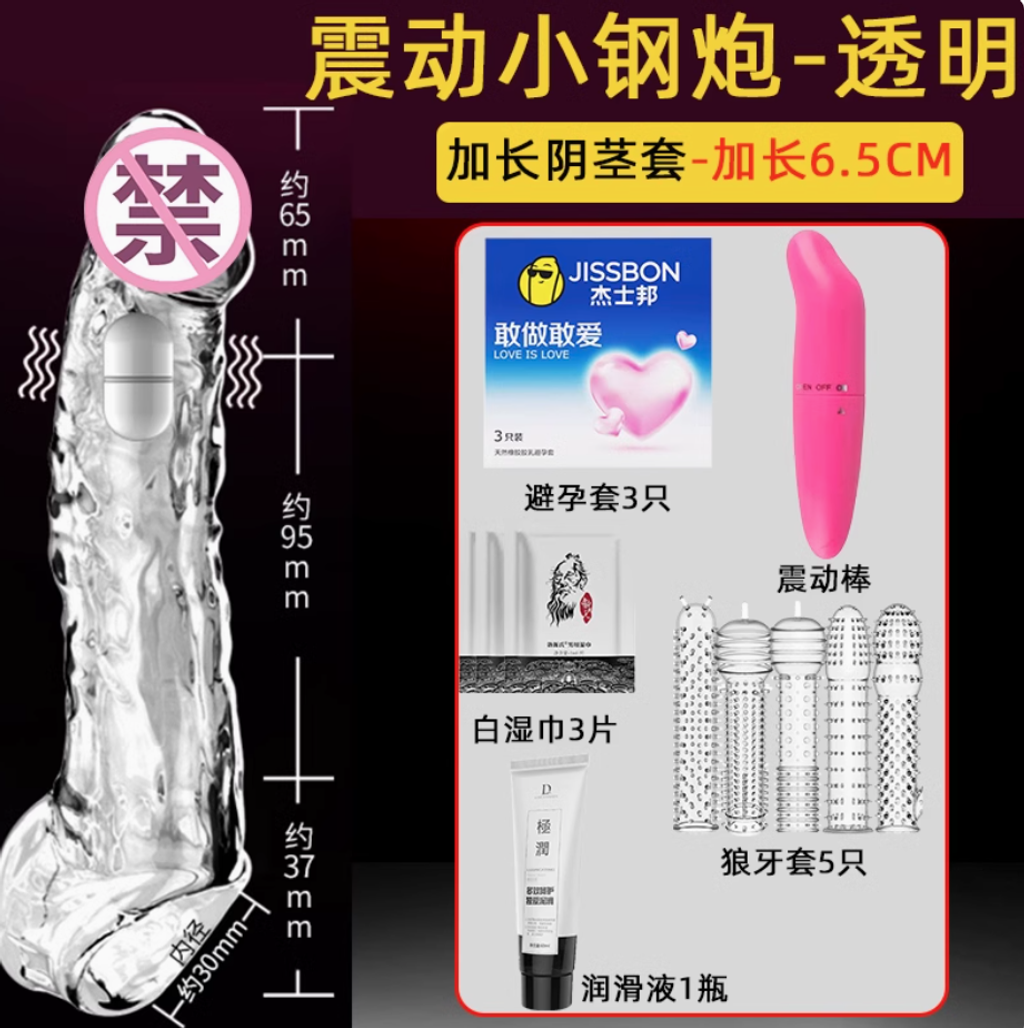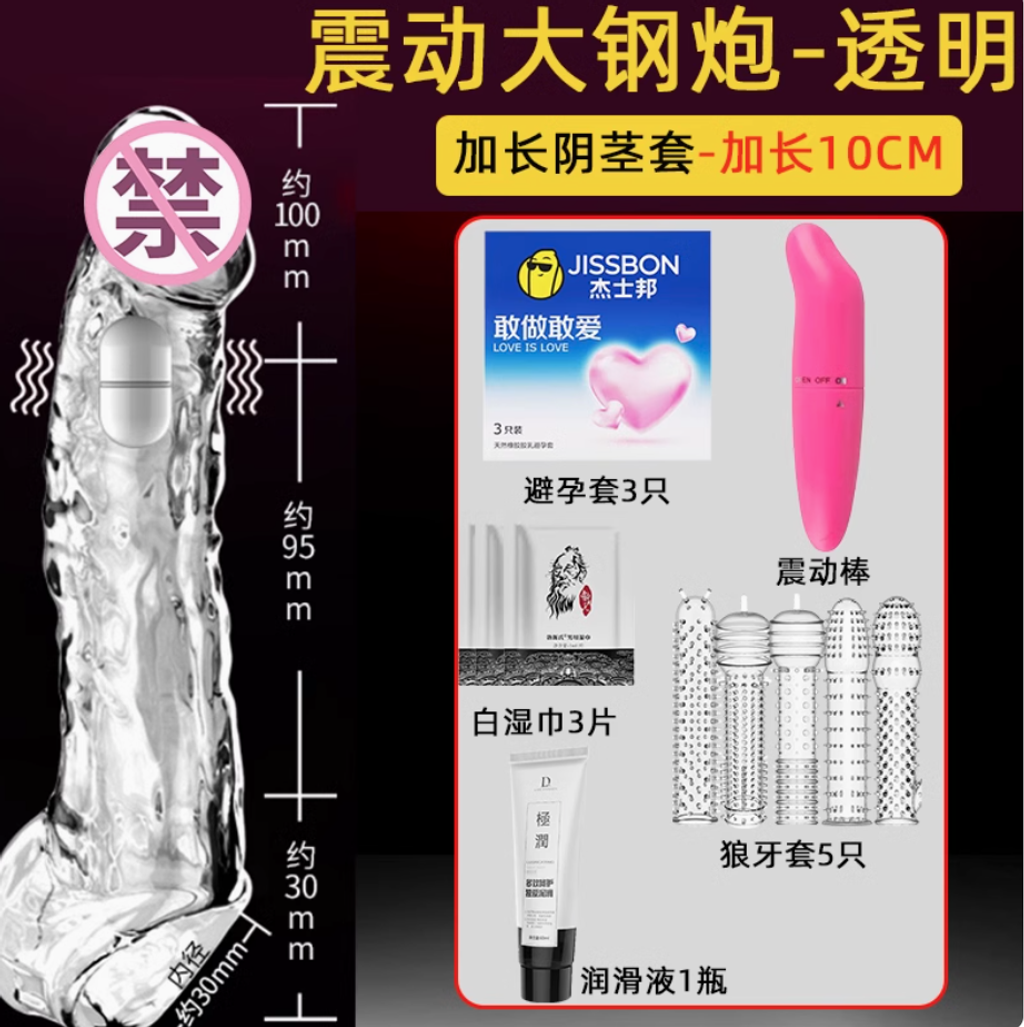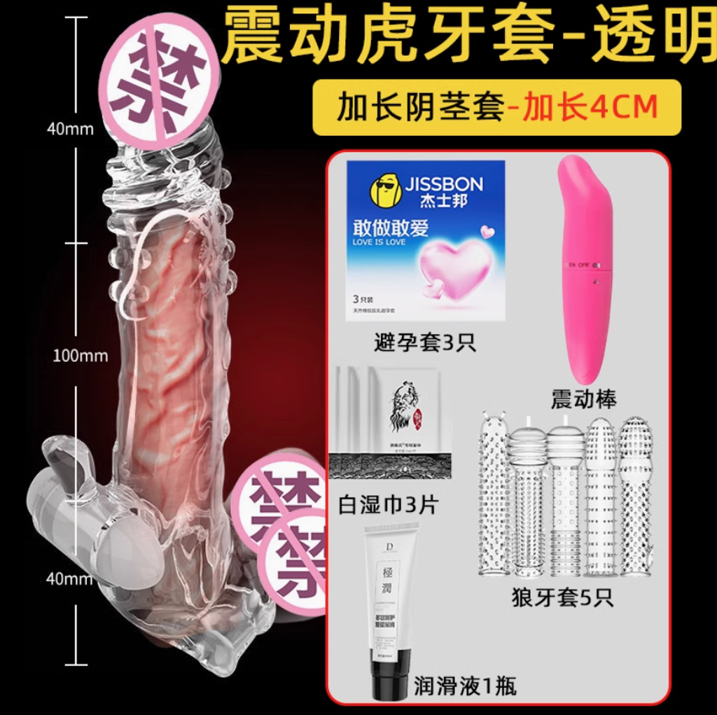 【震動款虎牙加長4釐米1只】避孕套3只+潤滑液+情趣大禮包