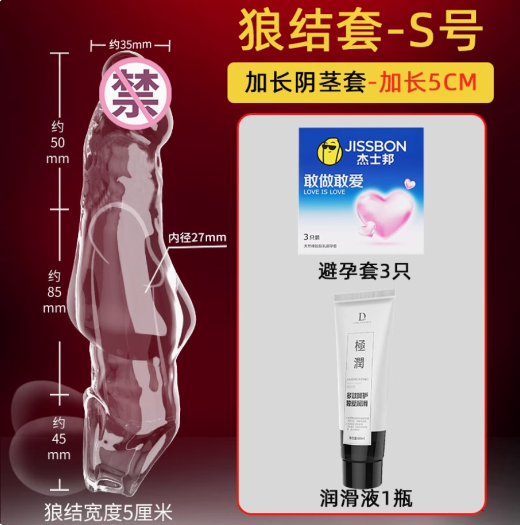 【狼結s加長5釐米1只】避孕套3只+潤滑液