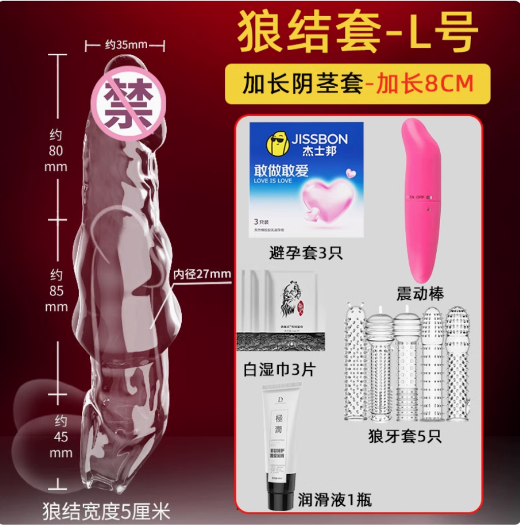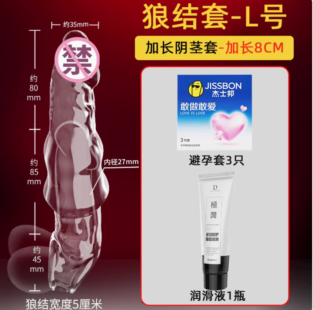 【狼結L加長8釐米1只】避孕套3只+潤滑液+情趣大禮包