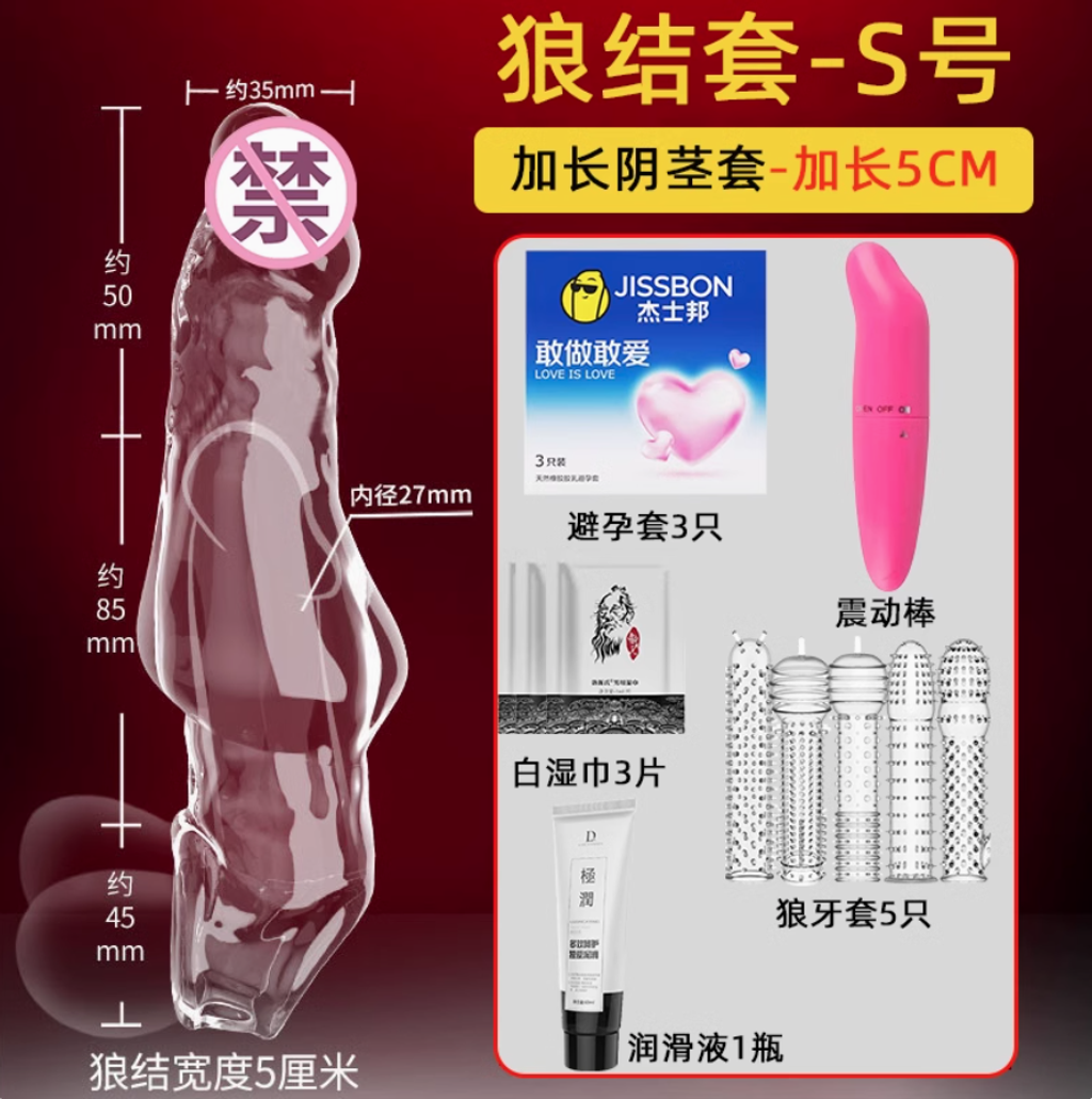 【狼結s加長5釐米1只】避孕套3只+潤滑液+情趣大禮包