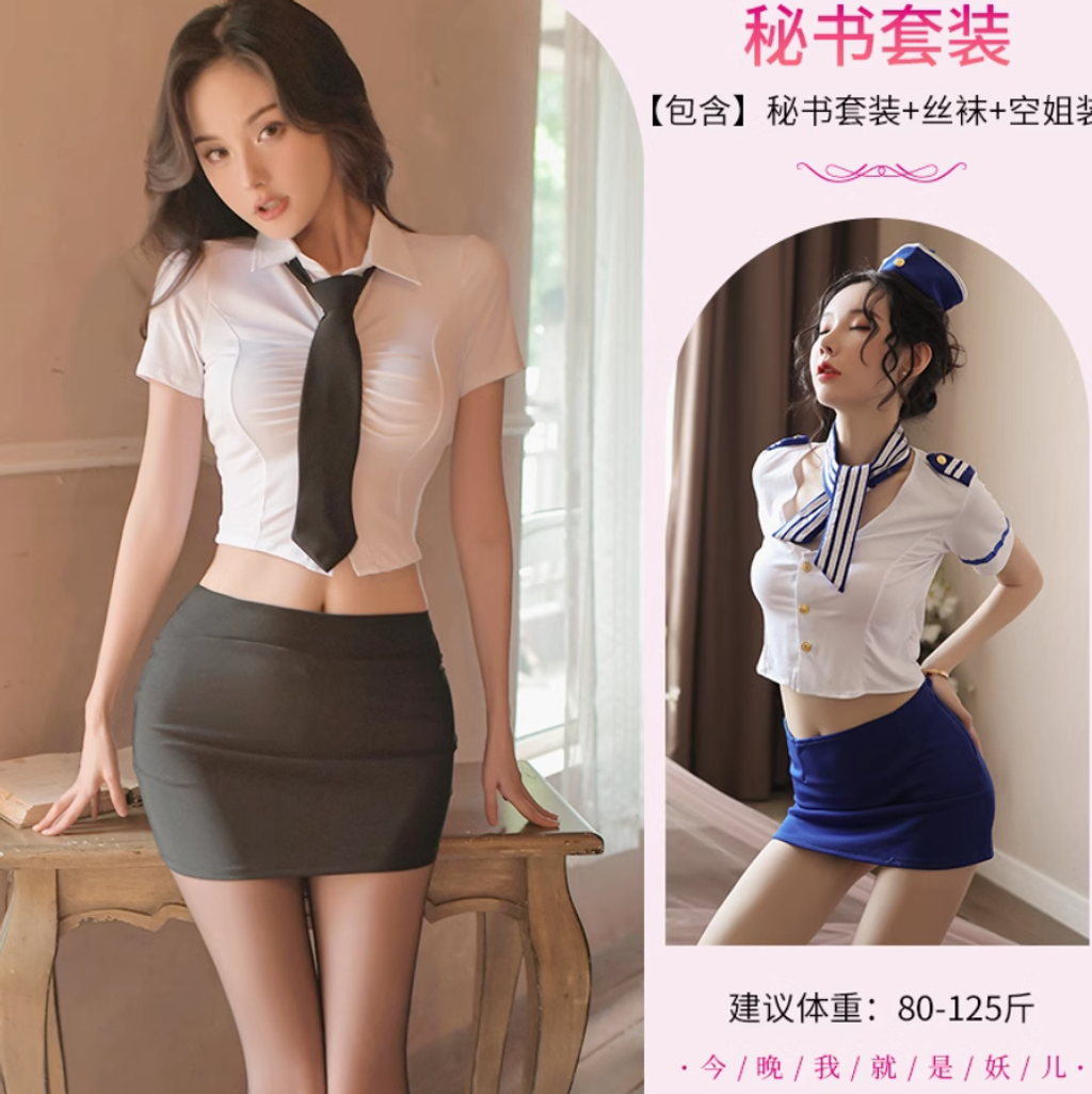風情秘書套裝【含絲襪】+空姐裝