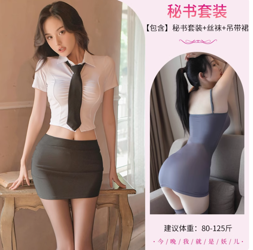 風情秘書套裝【含絲襪】+吊帶裙+絲襪