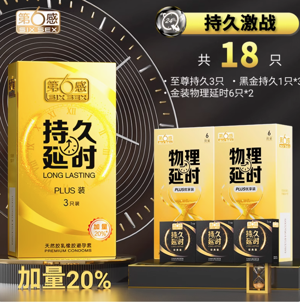 持久激戰【18只】至尊持久3+黑金持久3+金裝物理延時6只*2