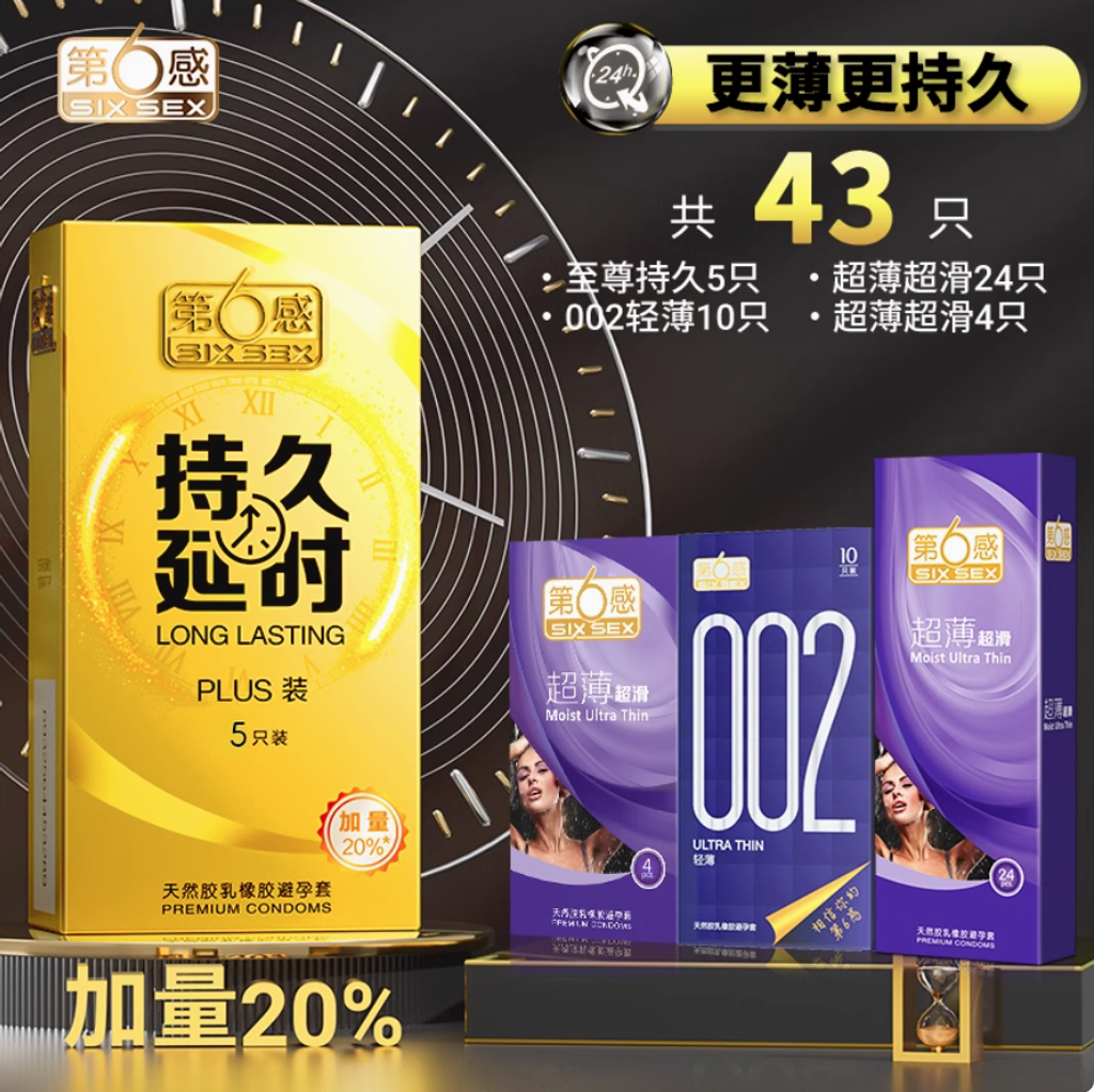 更薄更持久【43只】至尊持久5+超薄超滑24+002輕薄10只+超薄超滑4