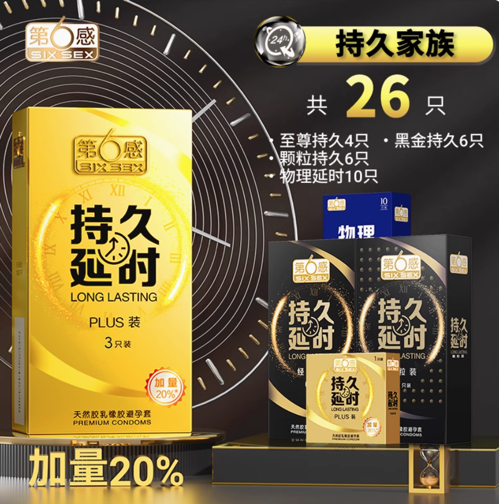 持久家族【26只】至尊持久4+黑金持久6+顆粒持久6+物理延時10只.