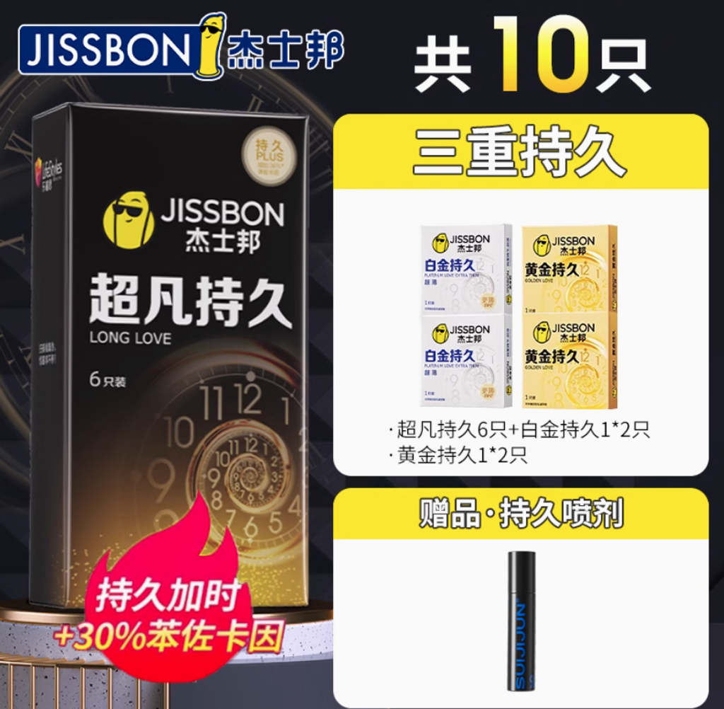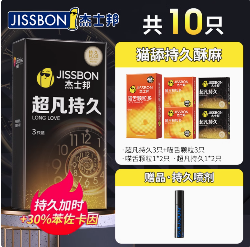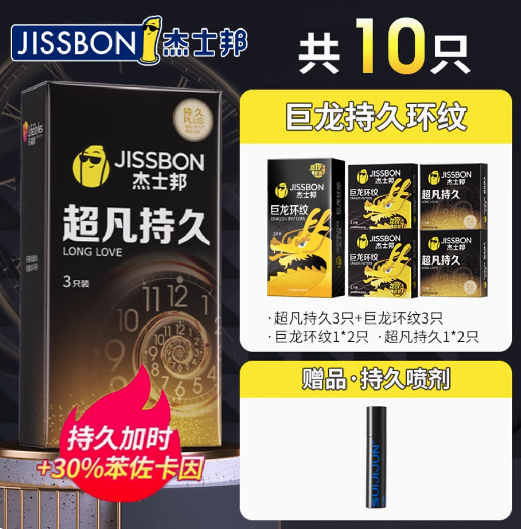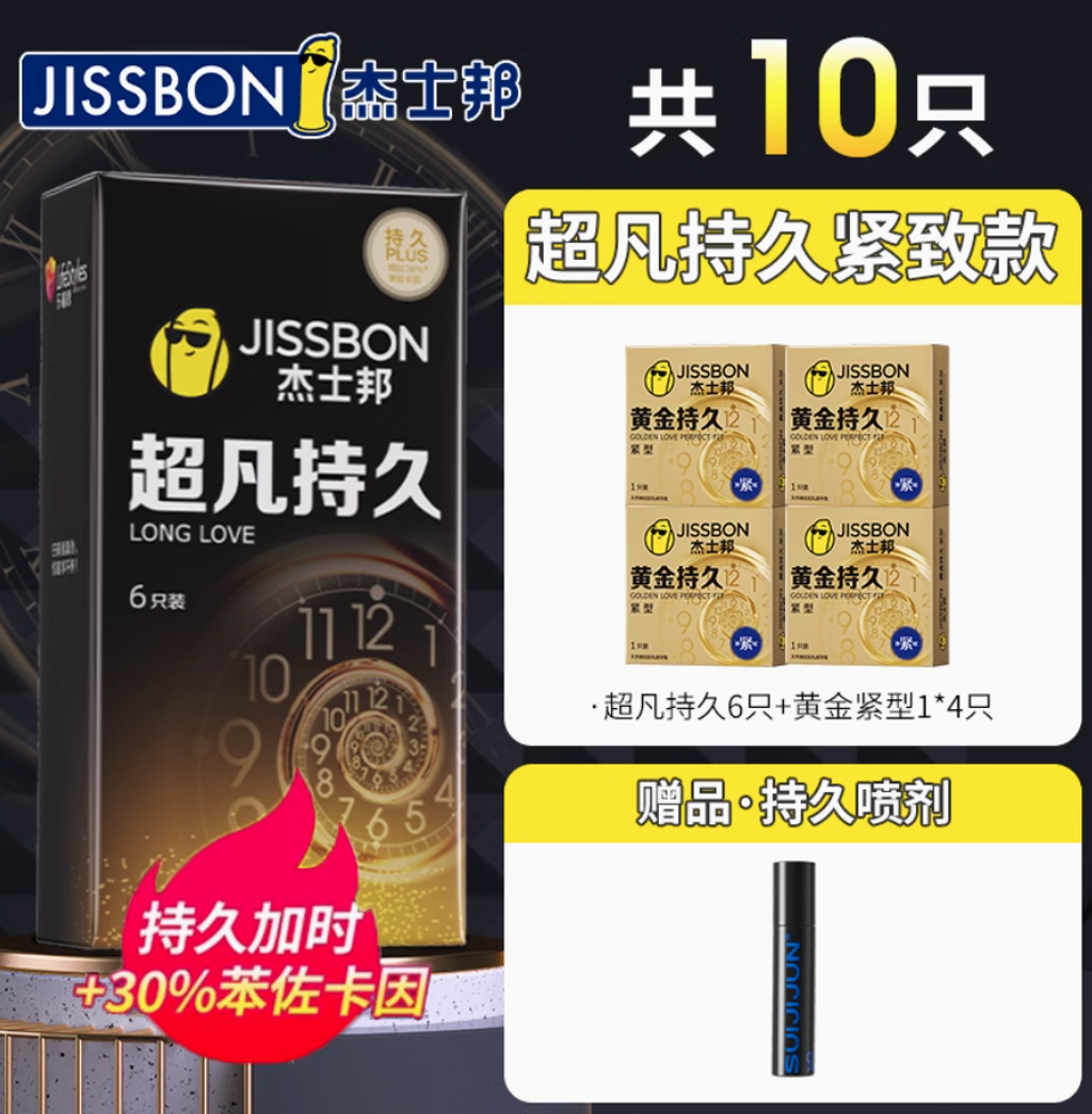 小號持久套【10只】超凡持久6+黃金緊型持久4+持久噴劑