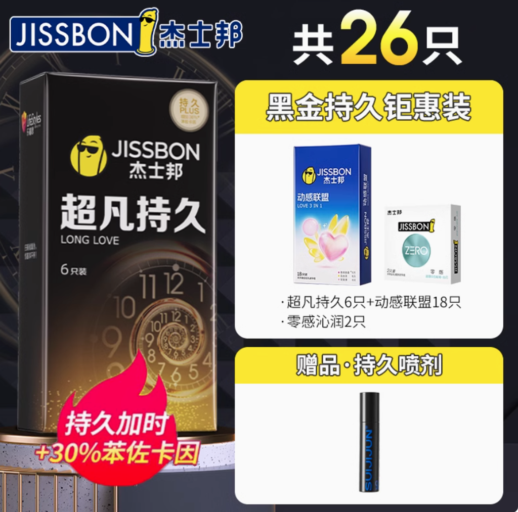 超凡持久鉅惠【26只】超凡持久6+零感超薄超值20只+持久噴劑
