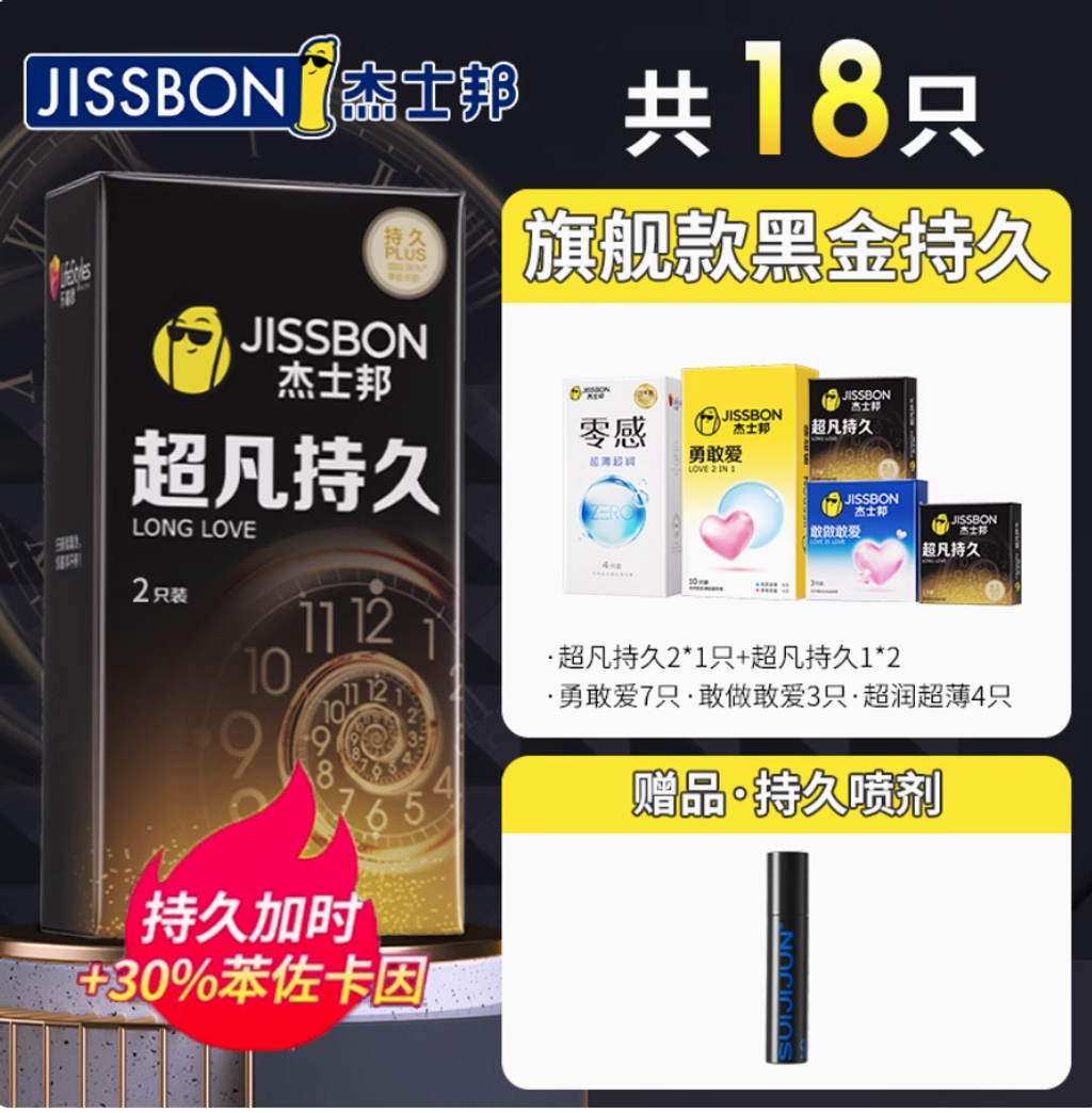 旗艦款黑金持久【18只】超凡持久4+勇敢愛7+敢愛3+進口超潤薄4+持久噴劑