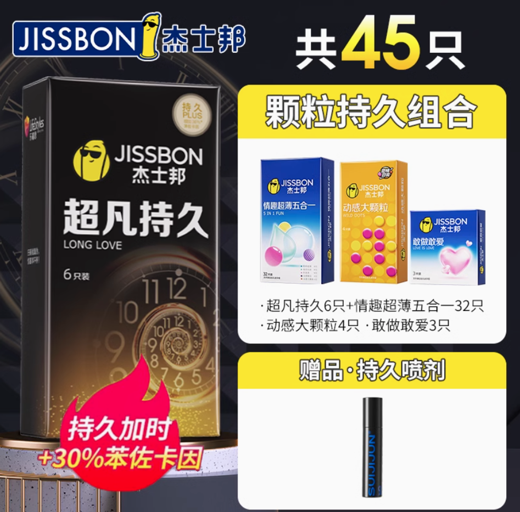 顆粒持久組合【45只】超凡持久6+情趣大顆粒39+持久噴劑