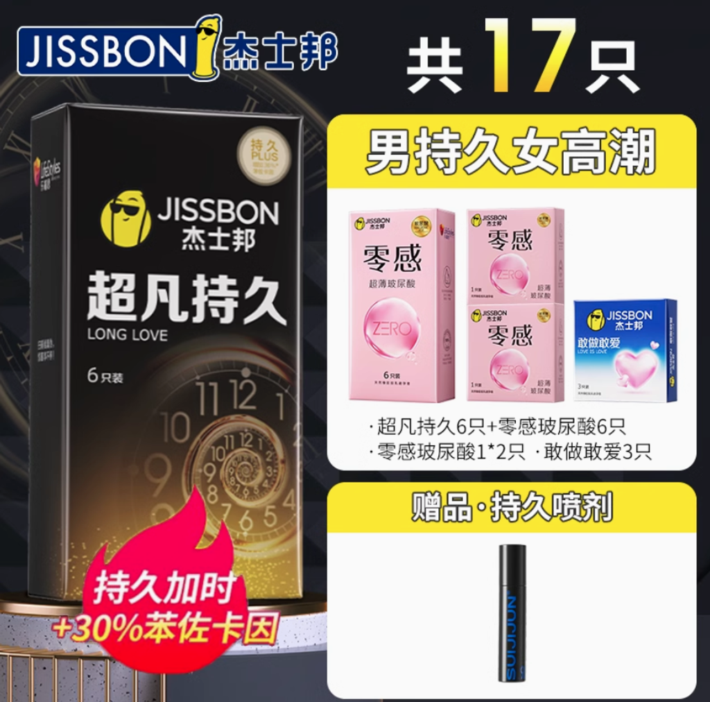 男持久女高潮【17只】超凡持久6+零感玻尿酸8+敢愛3+持久噴劑