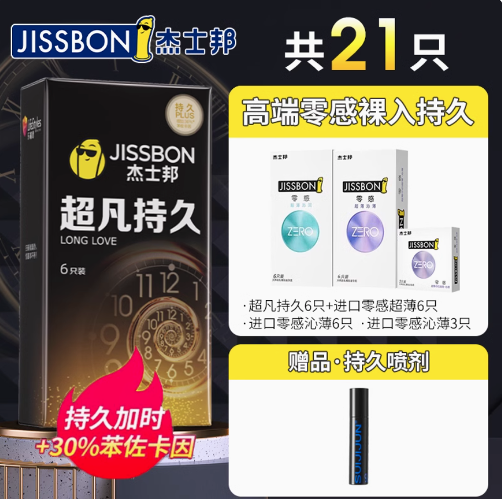 高階裸入持久【21只】超凡持久6+進口零感超薄15+持久噴劑