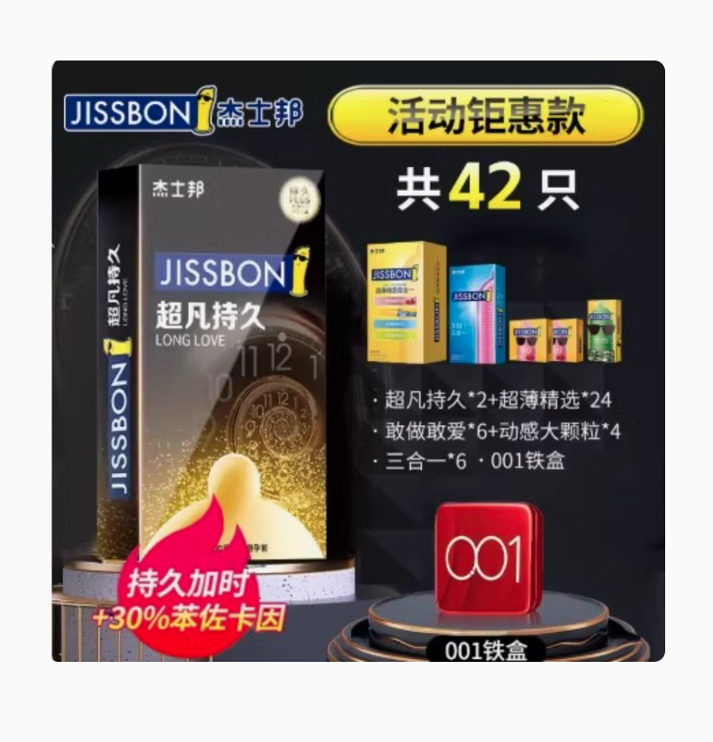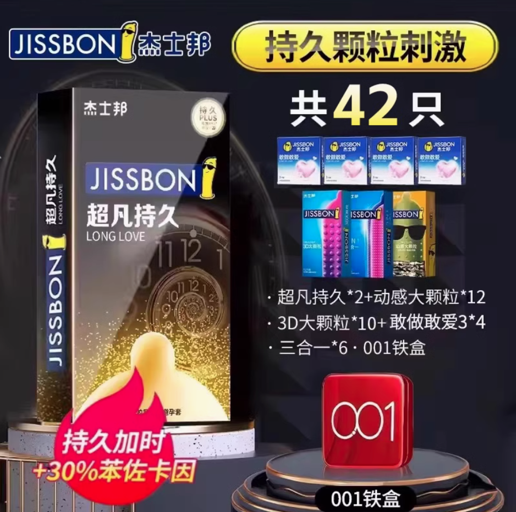 持久顆粒刺激【42只】超凡持久2+動感大顆粒12+3D大顆粒10+敢做敢愛12+三合一6+送001鐵盒