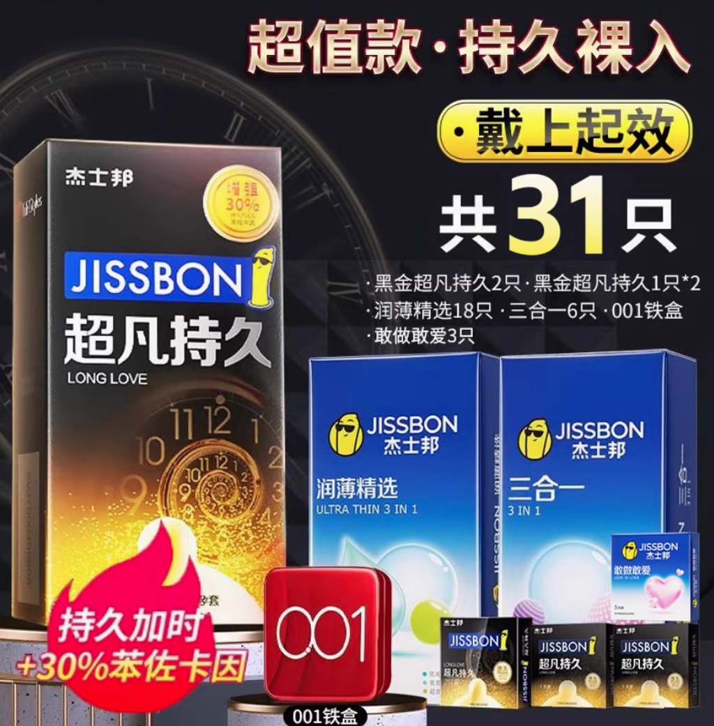 超值款·持久裸入【31只】超凡持久4+潤薄精選18+三合一6+敢愛3+001鐵盒
