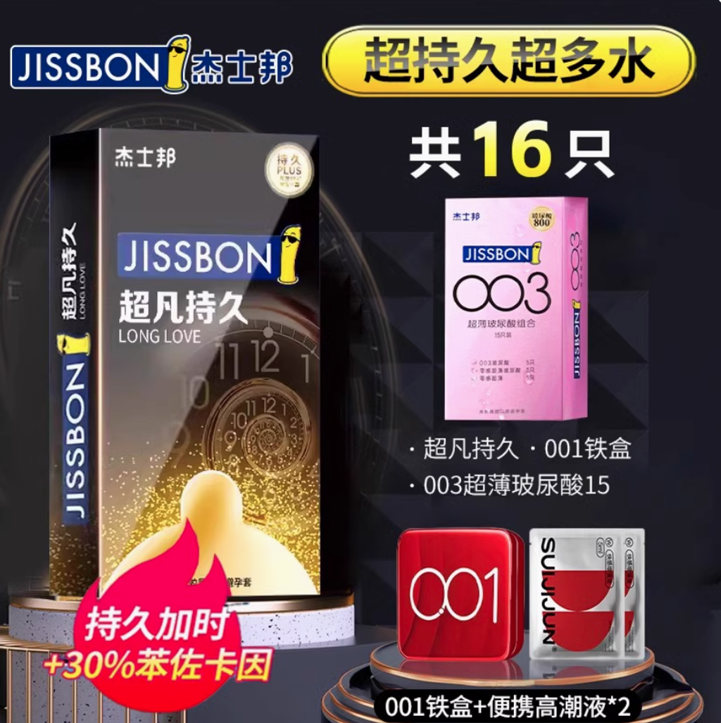 超持久·超多水【16只】超凡持久+003超薄玻尿酸15+送001鐵盒+便攜快感液*2