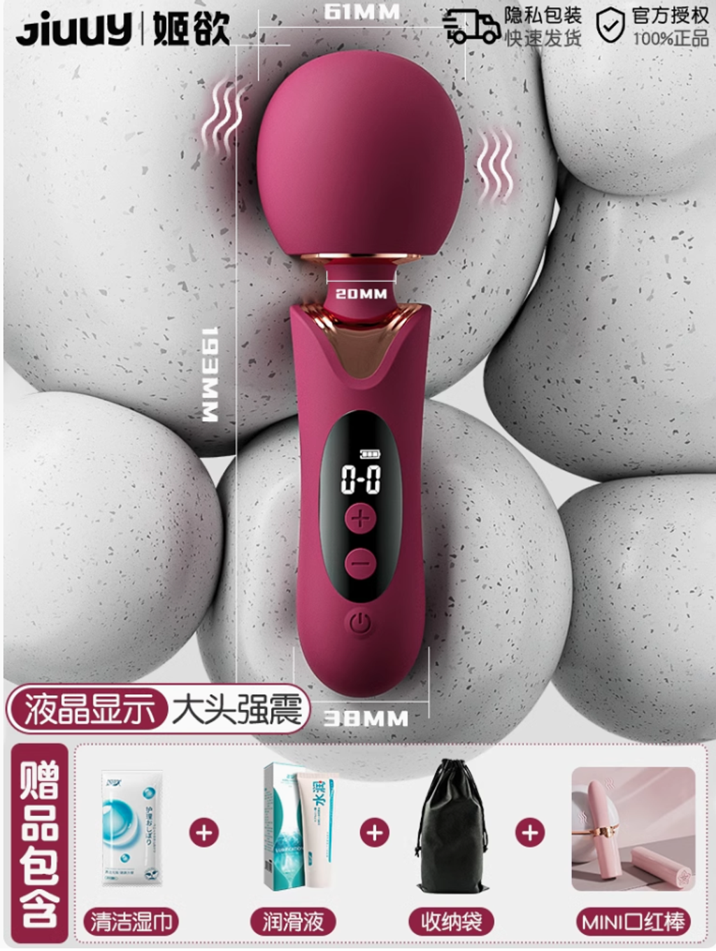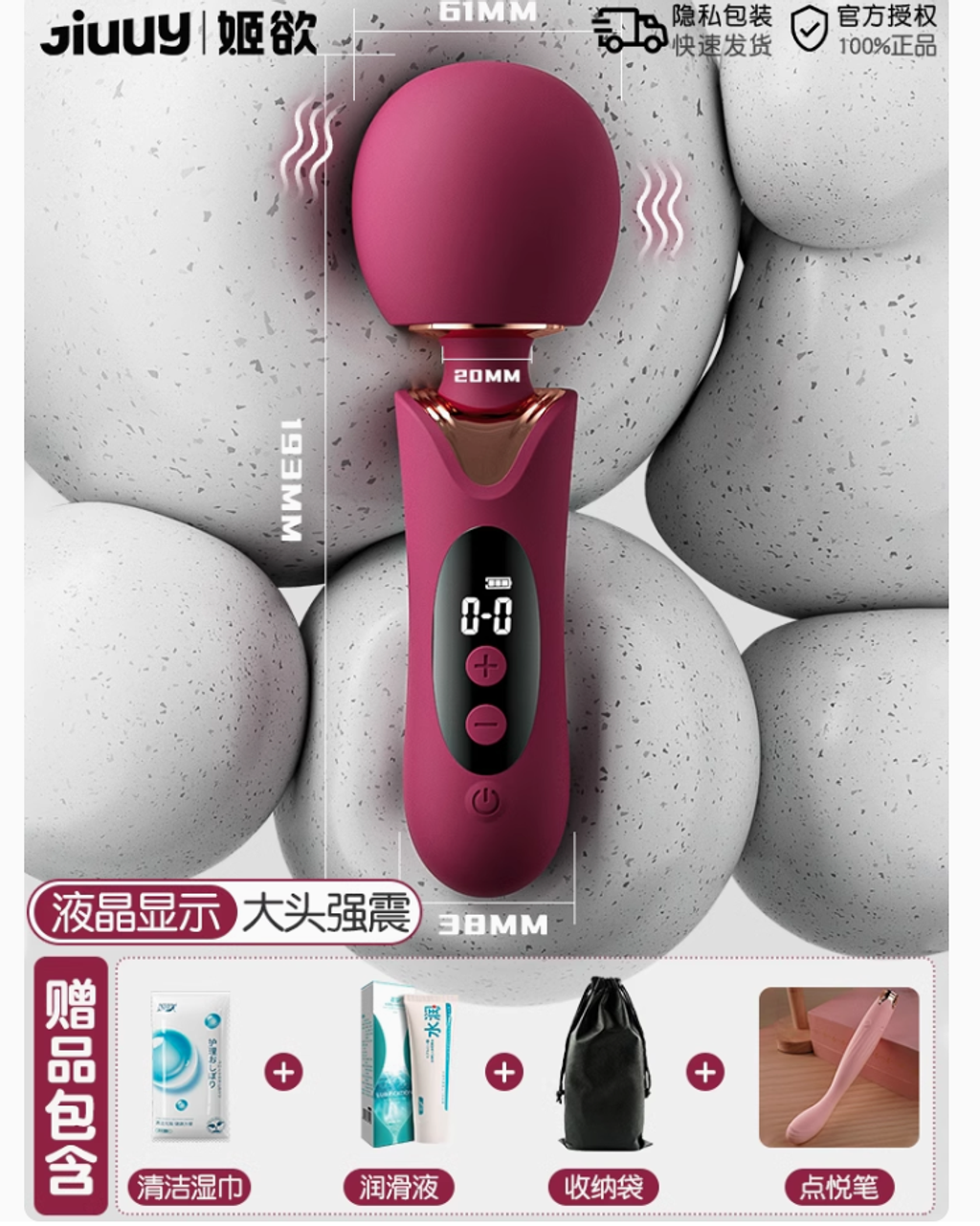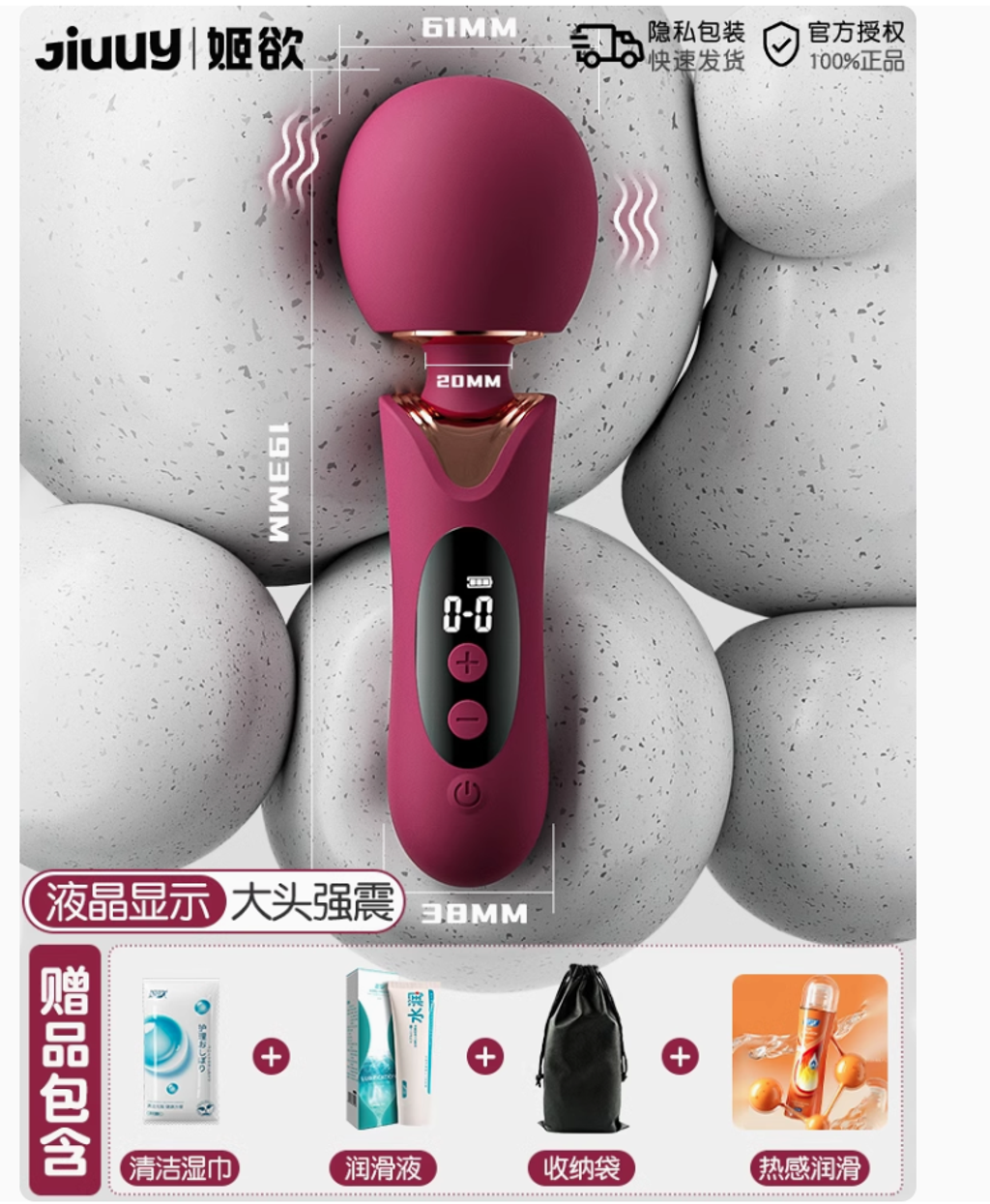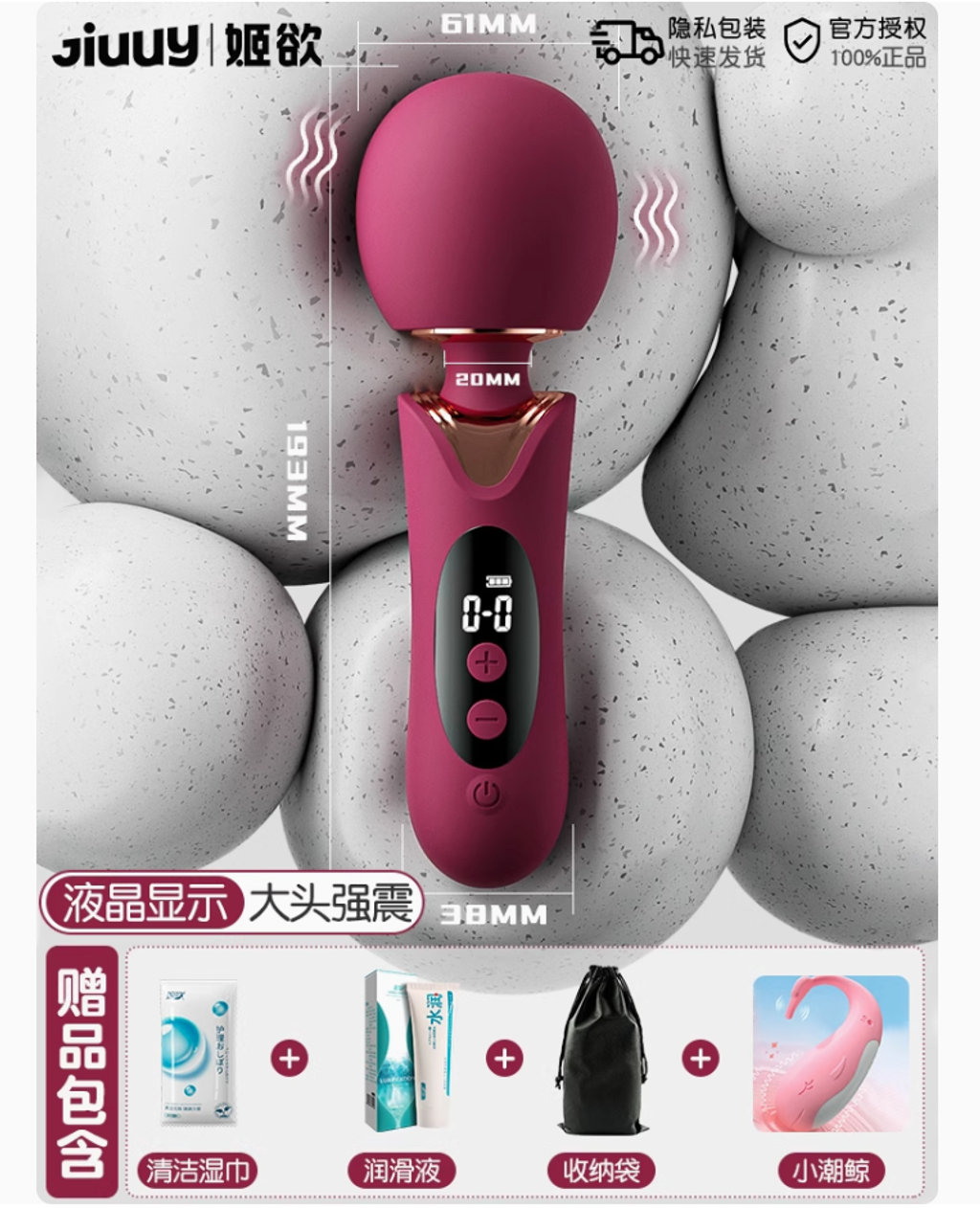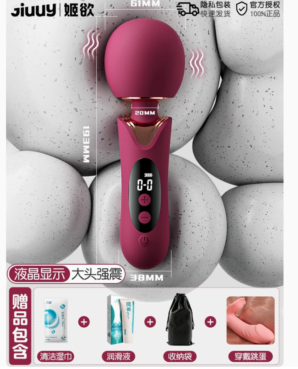 液晶屏顯震動棒【大頭柔軟 貼合強震】+穿戴跳蛋 送情趣禮包
