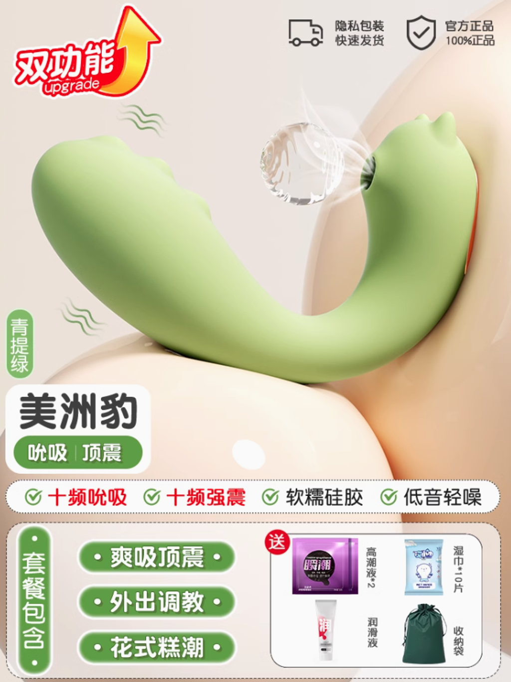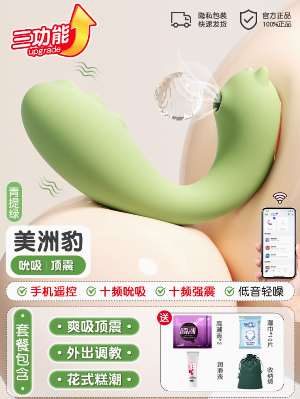 三功能【APP遙控+10頻吮吸+10頻強震】青提綠