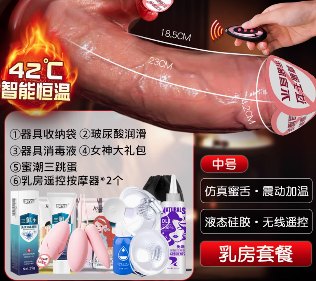 【全自動伸縮搖擺舌舔-大號】_乳房套餐/雞巴棒+粗 陽性 雞